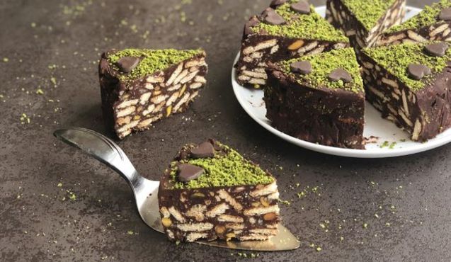 Kestaneli antep fıstıklı mozaik pasta