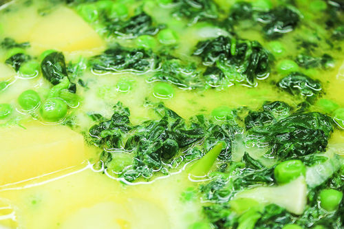 Derin bir tencerenin içinde zeytinyağı ısıtılır ve içinde yemeklik doğranmış soğan ortadan ikiye bölünmüş, çekirdekleri çıkarılmış biber ile öldürülür. Bezelyeler ve ıspanaklar, kabuğu soyulmuş ve dogranmış patates soğanlara eklenir, üzeri su ve süt ile örtülür, tuzu ekilir, önceden bütün olarak kullanılan biber atılır ve 15-20 dakika sebzeler yumuşayıncaya kadar pişirilir. Soğumaya bırakılır. El blendırı ile bir boza kıvamına gelene kadar çekilir, isteğe bağlı süzgeçten geçirilir. Çorba buzdolabında en az 2 saat kadar soğutulur, kaselere bölünür. Üzerine domates kurusu, kıtır ekmek ve ay çiceği çekirdeği ile karabiber ve istenirse limon suyu konarak servis edilir.