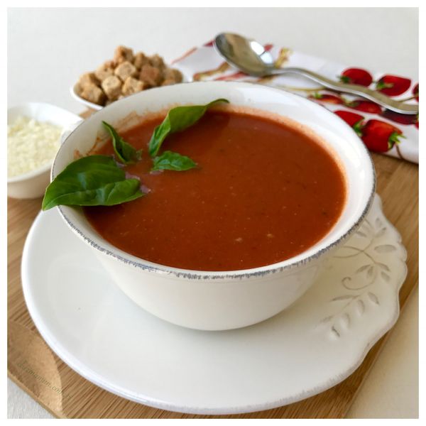 Kaselere pay edip fesleğen yapraklarıyla süsleyin, parmesan ve kruton ile servis edin.