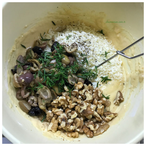 Temel ölçüleri uygulayıp taze kekik, ceviz içi ilavesi ve yeşil ve siyah zeytinleri bir arada kullanarak hazırladığım bu lezzete arzu ederseniz 5-6 adet kurutulmuş domatesi incecik doğrayarak ekleyebilirsiniz. Hazırlaması çok kolay olup 'Bu kadar mı lezzetli olur?' diyebileceğiniz zeytinli cevizli keki kahvaltıda, çay saatinde, okuldan gelen çocuklarınıza veya akşam yemeğine davet ettiğiniz misafirleriniz için yapabilirsiniz.