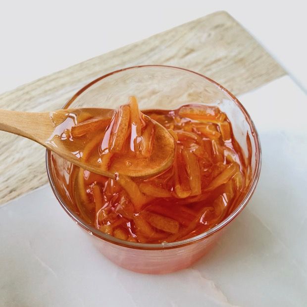 Çocukluk yıllarımızda annemin portakal kabuklarını ziyan etmeyip yaptığı reçelin tadını hiç unutamam. Portakalın farklı versiyonları ile yaptığım reçeller haricinde benim için anıları olan nostaljik reçeli, kış mevsiminde en az birkaç kez yaparım.