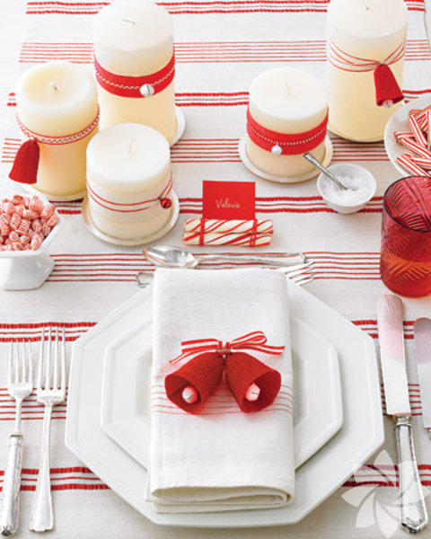 Sade ama şık bir yılbaşı isteyenler bembeyaz bir masa örtüsünün üzerine kırmızı mumlarla da harikalar yaratabilirler.