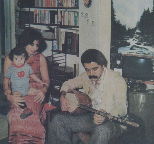 Levent Kırca, eşi Nur ve oğlu Oğulcan'a saz çalıp türkü söylüyor (1977)