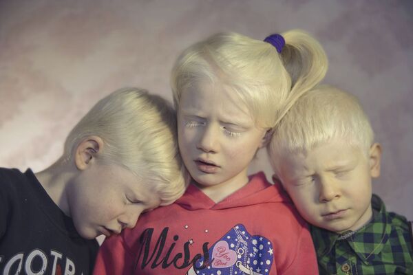 Albinolu kardeşler Cem (solda), Cemre(ortada)Akpınar ve arkadaşları Furkan Özorman (sağda) – Şebnem Çoşkun