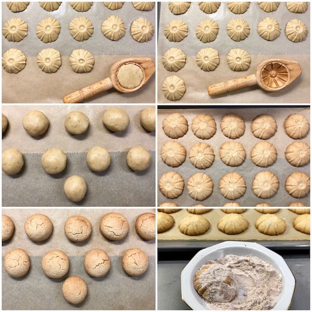 4) Unları yavaş yavaş ekleyerek yoğurmaya başlayın (ele yapışmayan yumuşak bir hamur olacak). Cevizleri de ilave edip yoğurarak kabuklu ceviz boyutunda yuvarlaklar hazırlayın (hamurun yarısına kerebiç kalıbıyla şekil verdim, istediğiniz kalıplarla veya yuvarlayarak hazırlayabilirsiniz).