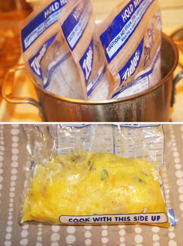 Isıya dayanıklı poşetlerde yumurta pişirmeyi düşündünüz mü hiç? Birden fazla omlet yapacağınız zaman yumurtayı omlet malzemeleri ile karıştırıp bu poşetlerin içine doldurmayı ve suda haşlamayı deneyin.